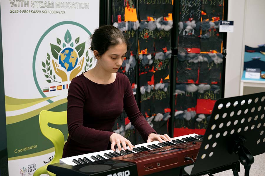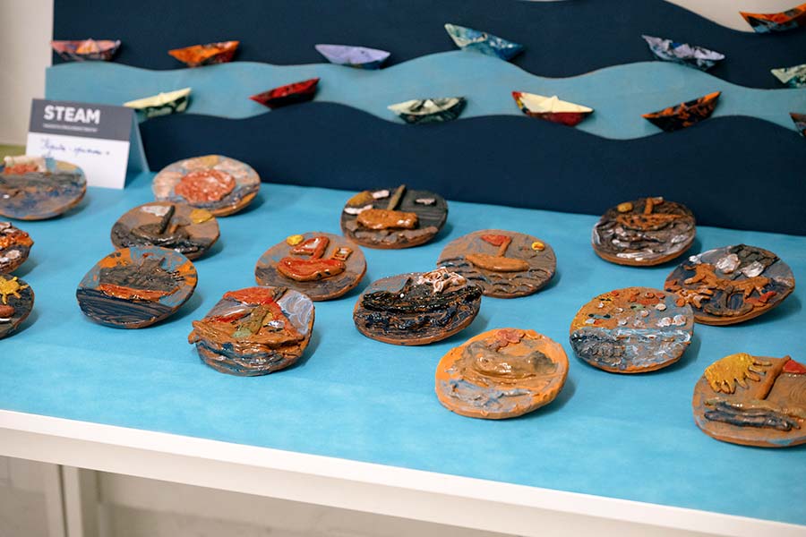 В центъра на събитието беше изложба с ученически проекти, създадени в часовете по STEAM. Родителите имаха възможност да разгледат разнообразни разработки – от модели и експерименти до креативни решения, вдъхновени от реални проблеми. Всяка идея носеше отпечатъка на ученическото въображение, но и на целенасочено развивани умения за работа в екип, критично мислене и търсене на устойчиви решения.