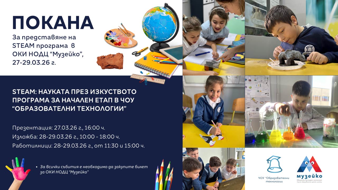 Каним ви на вълнуваща среща с бъдещето на образованието! През последния уикенд на март пренасяме творческата енергия на нашите ученици в магическото пространство на Научно-образователен детски център „Музейко“.