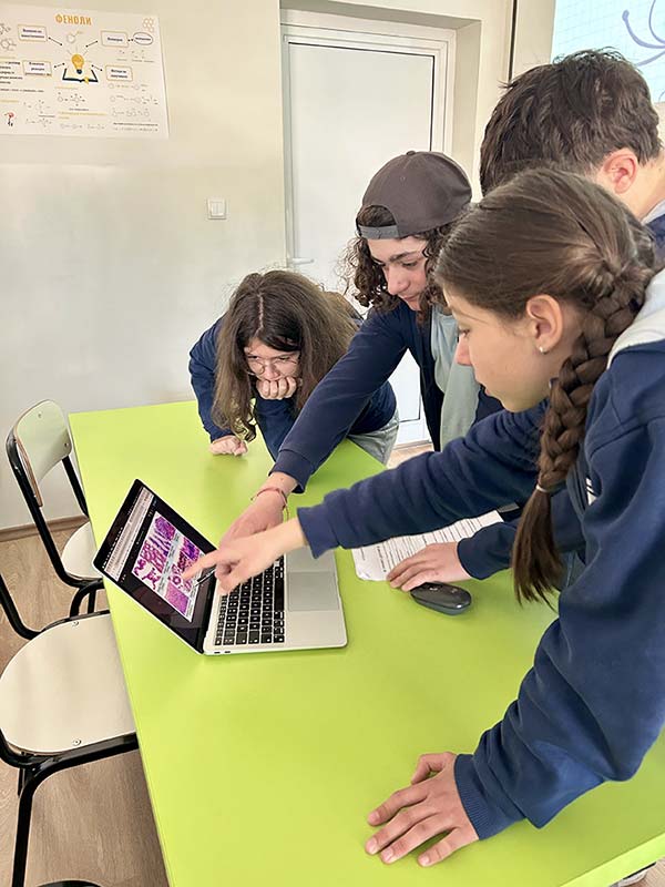 Учениците имаха възможност да наблюдават животински тъкани чрез микроскоп, използвайки лично изготвени от Владимир препарати. Това създаде усещане за автентичност и ангажираност, като превърна учебния процес в реално изследване. В допълнение, в рамките на урока беше изготвена и кръвна натривка, чрез която учениците се запознаха отблизо с клетъчния състав на кръвта и приложението на този метод в практиката.