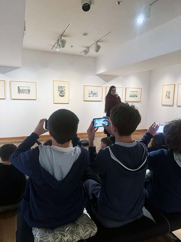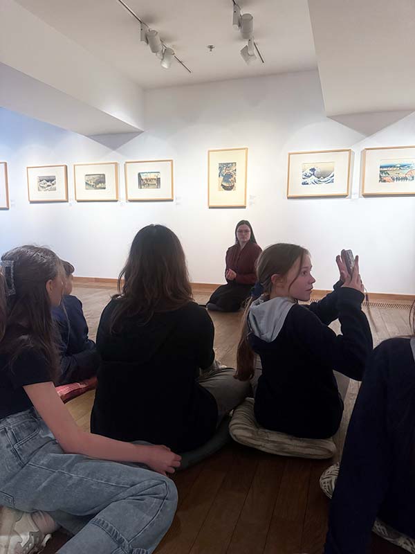 В първата част на визитата те се потопиха в изяществото на японската графика. С интерес и любопитство разгледаха произведения, в които фините линии, хармонията с природата и традиционната естетика създават силно въздействие с минимални средства. Учениците откриха как простотата и детайлът могат да съществуват в съвършен баланс – ценен урок както за изкуството, така и за начина, по който възприемаме света около нас.
