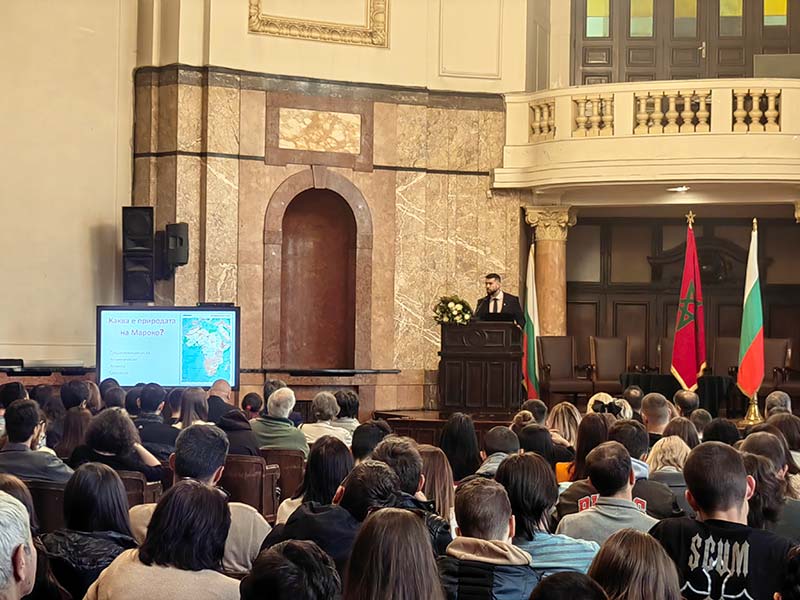 Имахме възможността да се насладим на презентации за удивителните природни феномени (презентатор доц. д-р Димитър Желев) и богатото културно-историческо наследство (презентатор ас. Кирил Николов) на Кралство Мароко, докоснахме се до щанда с традиционни изделия, сред които и прочутото арганово олио, опитахме мароканския чай, поднесен под звуците на автентична музика. Вкусни специалитети от Мароко. На събитието присъства извънреден пълномощен посланик на Кралство Мароко – Н. Пр. г-жа Закия Ел Мидауил.