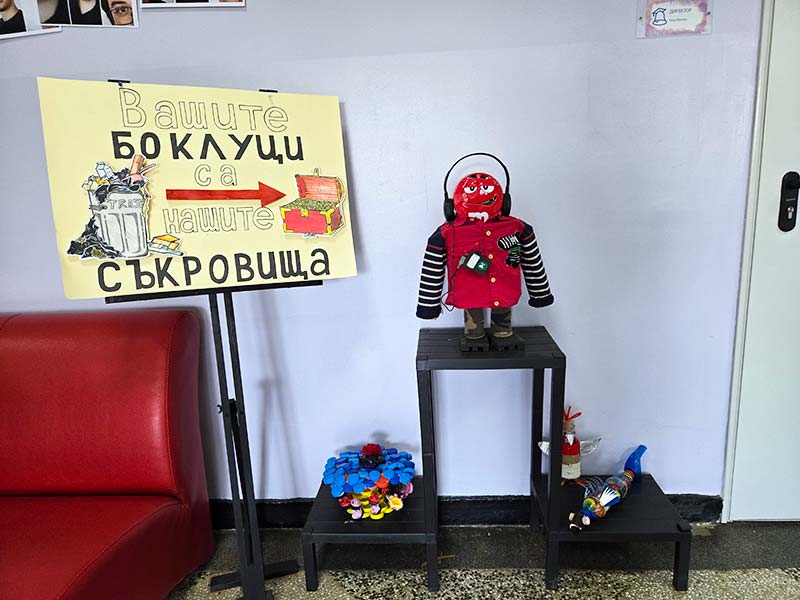 Кулминацията на инициативата беше организираната ученическа изложба от рециклирани материали, в която учениците представиха своите авторски творби. Всяко произведение носеше послание – за въздействието на отпадъците, за нуждата от преосмисляне на потреблението, за втория шанс на ресурсите и за силата на изкуството да вдъхновява промяна.